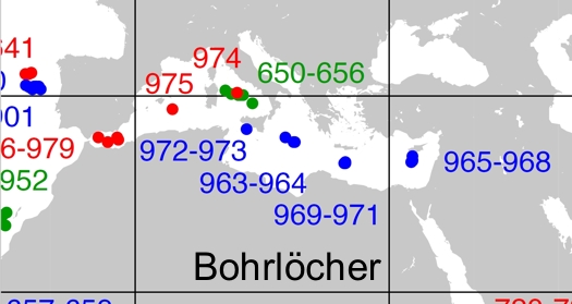 b – Bohrlöcher der Glomar Challenger im Mittelmeer (Link Criuse Programm gesamt)