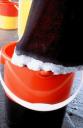 schwarzes, rotes und gelbes Fahnentuch, bemalte Plastikeimer. Kunsthaus Hamburg.