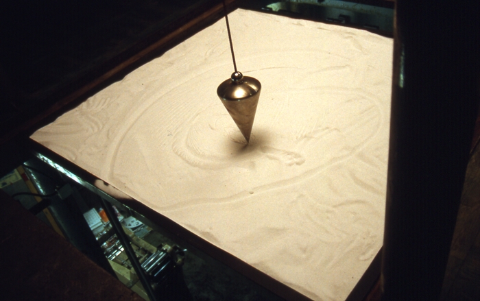„Seismographen“, Installation. Motorschiff Stubnitz, Rostock, Brügge – KULTURHAUPTSTADT EUROPAS 2002, langfristige Leihgabe an das Schiff. Edition einer Kartei, Internetpräsenz der Stubnitz. [Die Stubnitz ist je nach Standort, Unternehmung oder Krise unterschiedlich leicht zu erreichen, das Pendulum Projekt mag sichtbar sein oder nicht …]