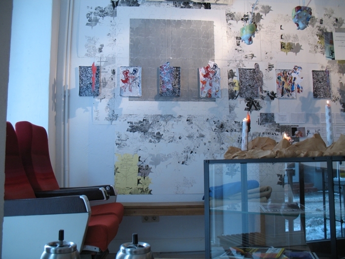 „durchsichtig und auch undurchsichtig“, Installation im Ausstellungsbereich des Rathauses Lichtenau. Jede Ausstellung verweist auf Nichtausgestelltes, sogar Nichtausstellbares.